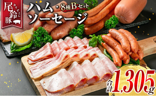 【PREMIUM PORK】 尾鈴豚 ハム ソーセージ 詰め合わせ 合計1305g 8種 Bセット 宮崎県産