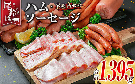 【PREMIUM PORK】 尾鈴豚 ハム ソーセージ 詰め合わせ 合計1395g 8種 Aセット 宮崎県産