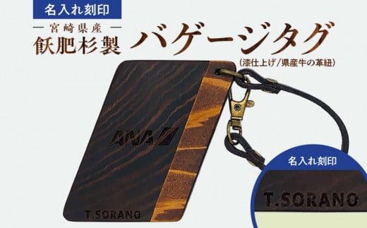 ふるさと納税 ANA青島ファクトリー 飫肥杉製 バゲージタグ 名前入り 刻印 ネームタグ ふき漆 青島塗 コラボレーション ボールパークドットコム社