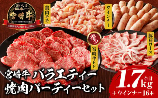 ・宮崎牛ヒレ300g ・宮崎県産豚肩ロース600g ・宮崎県産鶏肉モモ800g ・ウインナー16本(宮崎市内で製造) |
