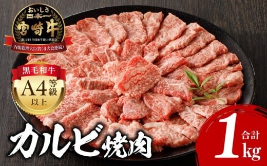 宮崎牛カルビ焼肉:500g×2パック 合計1kg (原産地:宮崎県) |