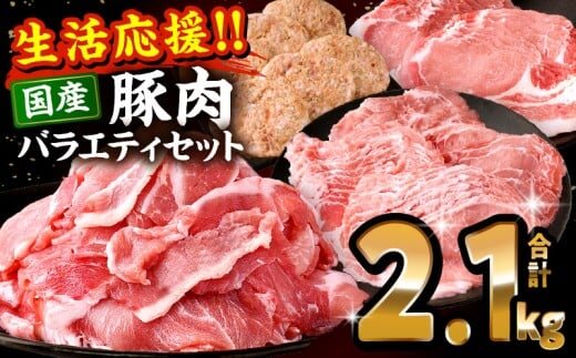 宮崎県産の豚ロース・豚肩ロースが含まれた総重量2.1kgの豚肉バラエティセットです。