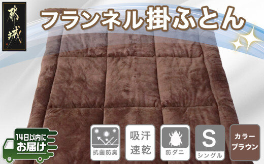 フランネル掛ふとん(ブラウン)【S】≪みやこんじょ快速便≫_AC-E102-R_( 都城市) 掛布団シングル/150×210cm 生地素材/ポリエステル100%(アルミ蒸着シート入) 吸汗速乾 抗菌防臭 防ダニ 日本製 寝具 清潔 東洋紡 高機能綿 毛織物