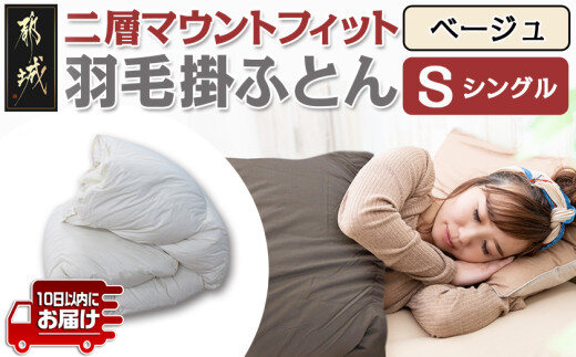 二層マウントフィット掛ふとん(ベージュ)【S】≪みやこんじょ特急便≫_55-E101-be-Q_(都城市) 羽毛掛布団シングル 150×210cm ホワイトダックダウン85% スモールフェザー15% SEKアレルGプラス 超軽量 日本製 羽毛布団 掛け布団