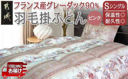 羽毛掛ふとん フランス産グレーダック90%(ピンク)【S】≪みやこんじょ特急便≫_65-E101-pk-Q_(都城市) 掛布団シングル 150×210cm 側生地 60サテン綿100% SEKアレルGプラス加工 保温性 耐久性 ダウンボール大 日本製 寝具