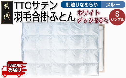 TTCサテン羽毛合掛ふとん ホワイトダック85%(ブルー)【S】≪みやこんじょ特急便≫_AF-E104-bl-Q_(都城市) 羽毛布団 寝具 抗菌防臭加工 ダウン SEKアレルGプラス シングル MADE IN 都城 合い掛け布団 春 秋