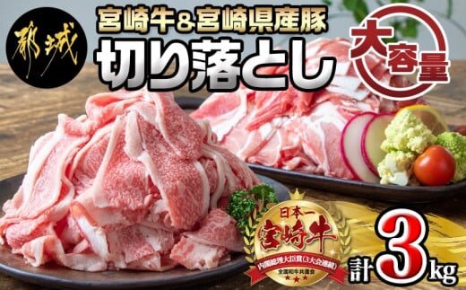 宮崎牛を使用した切り落としと、宮崎県産豚切り落としの大容量のセット!!!