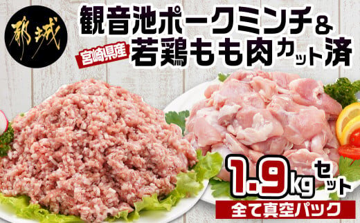 観音池ポークミンチ&宮崎県産若鶏もも肉カット済1.9kgセット_AA-9218_(都城市) 都城産 観音池ポーク 豚肉ミンチ 宮崎県産 若鶏もも肉切り身 鶏肉 鶏肉 真空パッ