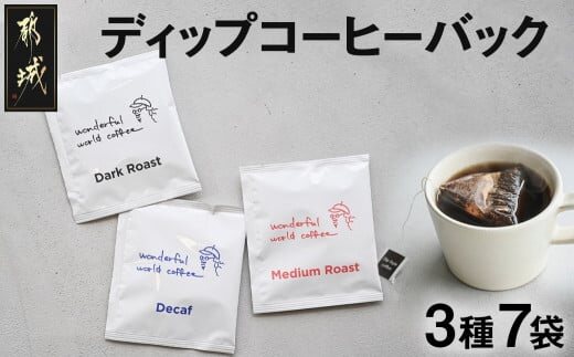 当店で焙煎したスペシャルティコーヒーの、ディップコーヒーバッグ3種7袋セットです。