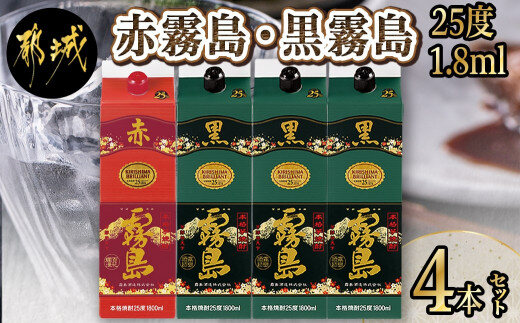 霧島酒造 本格焼酎「赤霧島・黒霧島」25度1.8L×4本_21-1901_(都城市)赤霧島 黒霧島 1.8L 25度 パック お湯割り 水割り ロック ソーダ割り