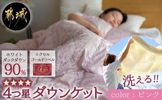 【ピンク】洗える4つ星ダウンケットホワイトダウン90%エクセルゴールドラベル_23-J201-pk_(都城市) 羽毛掛布団 シングル ロング 150×210cm 0.2kg ホワイトダックダウン 日本製 ピンク