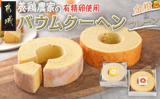養鶏農家より☆バウムクーヘン(金柑&プレーン)_MJ-K201_(都城市) バウムクーヘン 卵 新鮮 プレーン味 金柑味 ユウヒテラス 直径約13cm×高さ約4cm