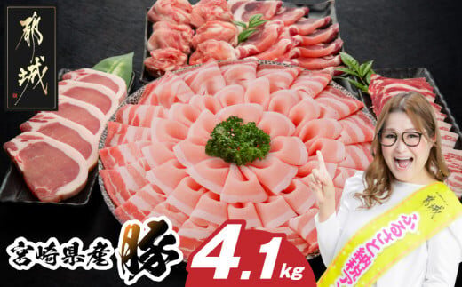 宮崎県産豚わくわく4.1kgセット(真空)_AC-8403-s_(都城市) 豚肉 豚肉セット 宮崎県産豚 しゃぶしゃぶ バラ 焼肉 切り落とし 肩ローススライス ロース とんかつ ミンチ ギャル曽根さんおすすめの豚肉返礼品