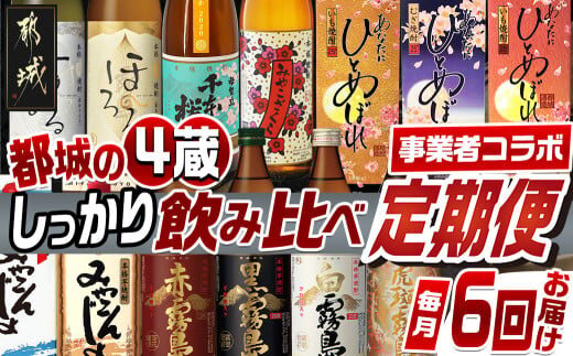 【事業者コラボ定期便】都城の4蔵しっかり飲み比べ焼酎6回定期便≪毎月≫_T79-MY01_(都城市) 霧島酒造 柳田酒造 大浦酒造 都城酒造 霧島するる 霧島ほろる 山田錦千本桜 あなたにひとめぼれ 黒麹仕込み みやこんじょ 白霧島 黒霧島 赤霧島 虎斑霧島 25度 20度 900ml 720ml 1800ml