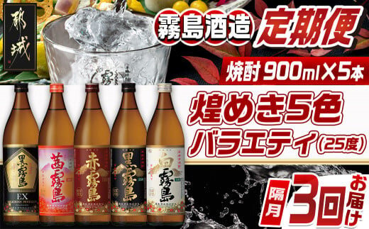 【焼酎定期便】[霧島酒造]煌めき5色バラエティ(25度)焼酎3回定期便≪隔月≫_T51-MY03_(都城市) 焼酎 黒霧島EX 茜霧島 赤霧島 黒霧島 白霧島 25度 900ml