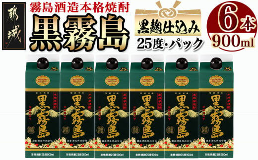 黒霧島パック(25度)900ml×6本_18-3802_(都城市) 霧島酒造 本格芋焼酎 パック 五合 6本 お湯割り 水割り ロック ソーダ割り 焼酎 酒