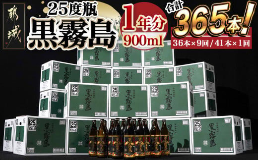 黒霧島25度900ml 1年分365本_TAJ10-1801_(都城市) 焼酎 黒霧島 25度 900ml 本格芋焼酎 黒霧島1年分365本 霧島酒造 全10回に分けて毎月お届け 定期便