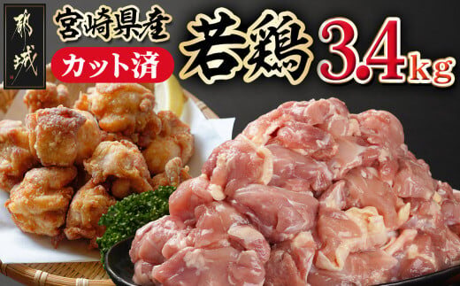 宮崎県産若鶏もも肉カット済!3.4kg!!_13-M401_(都城市) 宮崎県産若鶏 もも肉 カット済 340g×10パック 真空パック 小分け 鶏肉 モモ肉 冷凍 から揚げ 照り焼き