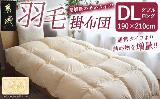 【充填量の多いタイプ・羽毛掛布団DL】ロイヤルゴールドラベル93%_117-J201_(都城市) ダブルロング ホワイトダックダウン93%使用 タンポポの綿毛 ふわふわ ロイヤルゴールドラベル 羽毛ふとん 断熱保温材 天然コットン100% ダウンプルーフ キルト製法