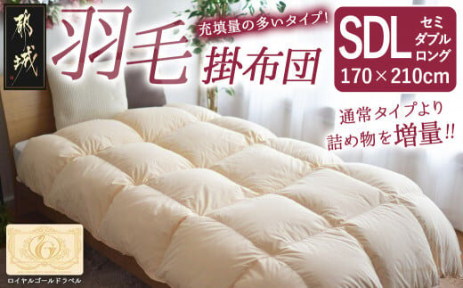 【充填量の多いタイプ・羽毛掛布団SDL】ロイヤルゴールドラベル93%_AJ-J206_(都城市) セミダブルロング ホワイトダックダウン 93%使用 タンポポの綿毛 ふわふわ ロイヤルゴールドラベル 羽毛ふとん 断熱保温材 天然コットン100% ダウンプルーフ キルト製法