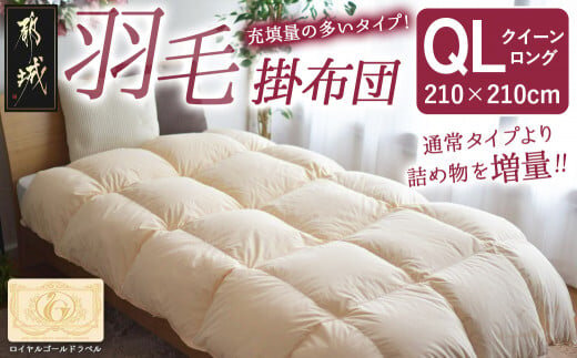 【充填量の多いタイプ・羽毛掛布団QL】ロイヤルゴールドラベル93%_134-J201_(都城市) クイーンロング ホワイトダックダウン 93%使用 タンポポの綿毛 ふわふわ ロイヤルゴールドラベル 羽毛ふとん 断熱保温材 天然コットン100% ダウンプルーフ キルト製法
