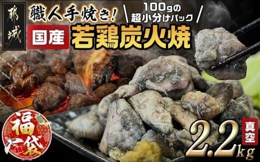 【福袋★2026】≪超小分けパック≫職人手焼き!国産若鶏炭火焼2.2kg_AA-3311-F2026_(都城市) 国産若鶏 若鶏炭火焼(もも・むね) 小分け 100g 宮崎名物 鶏炭火焼 おつまみ