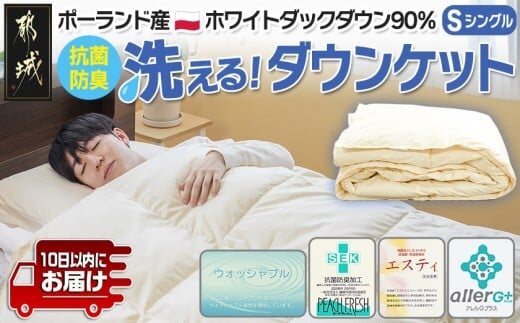 抗菌防臭加工洗えるダウンケット ポーランド産ホワイトダック90%【S】≪みやこんじょ特急便≫_AF-E105-Q_(都城市) 羽毛布団 寝具 抗菌防臭加工 ダウン SEKアレルGプラス加工 日本製 肌掛け布団 ウォッシャブル シングル