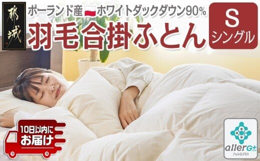 羽毛合掛ふとん ポーランド産ホワイトダック90%【S】≪みやこんじょ特急便≫_AI-E105-Q_(都城市) 羽毛布団 寝具 抗菌防臭加工 ダウン SEKアレルGプラス加工 日本製 合い掛け布団 シングル