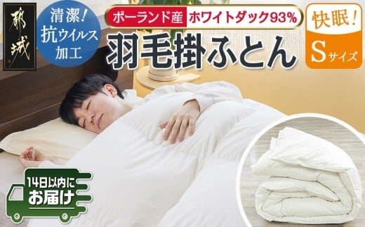 抗ウイルス加工羽毛掛ふとん ポーランド産ホワイトダック93%【S】≪みやこんじょ快速便≫_AJ-E106-R_(都城市) 羽毛布団 寝具 抗菌防臭加工 ダウン SEKアレルGプラス加工 日本製 掛け布団 シングル