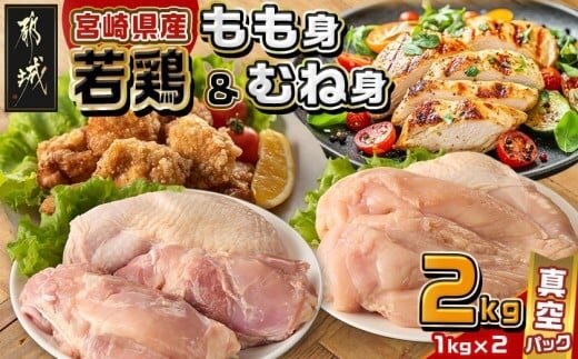 宮崎県産若鶏もも身&むね身2kgセット_AA-M601_(都城市) 宮崎県産若鶏 真空パック もも身 むね身 2kgセット 鶏肉