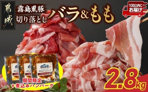 家計応援キャンペーン!霧島黒豚バラ&もも切り落とし2.8kgセット+ハンバーグ≪みやこんじょ特急便≫_AC-2803-Q-CP_(都城市) 10日以内お届け 霧島黒豚 バラ もも 切り落とし 200g 小分け 煮込みハンバーグ デミグラスソース仕立て