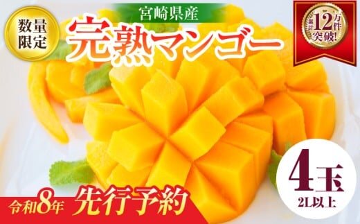 リピーター続出!!宮崎県産 完熟 マンゴー 2L以上×4玉 令和8年発送分 数量限定 フルーツ 果物 果汁 希少 濃厚 ジューシー 贅沢 上質 ご褒美 人気 国産 食品 おやつ デザート 産地直送 おすすめ ギフト プレゼント 贈り物 お土産 手土産 南国 日南市 送料無料_ED10-25