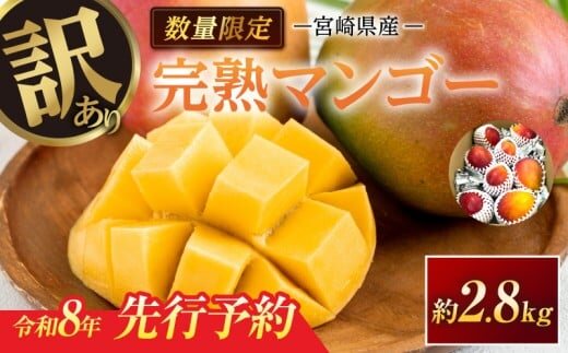 訳あり 宮崎県産 完熟マンゴー 約2.8kg 期間限定 数量限定 フルーツ 果物 くだもの 国産 食品 デザート おやつ フルーツサンド おすすめ ご褒美 贅沢 産地直送 傷 規格外 訳アリ おすそ分け 家庭用 冷蔵 宮崎県 日南市 送料無料_F77-24