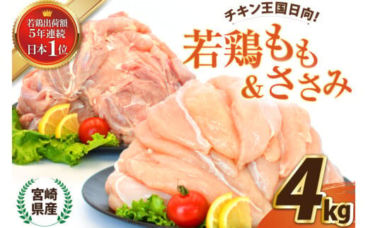 宮崎県産若鶏もも&ささみセット4kg [エム・ティ・シー 宮崎県 日向市 452061363] 鶏肉 セット 冷凍 個包装 小分け 国産 国内産 宮崎 鶏もも 鶏モモ ささみ 若鶏