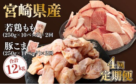 KU364 【定期便・全4回】<小分け&バラバラ> 宮崎県産鶏もも切身・豚こまセット 合計12kg