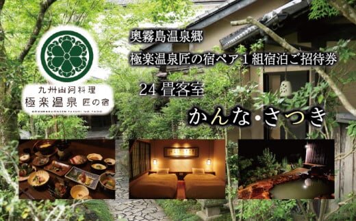 《にごり湯100選の名湯温泉宿[24畳和洋室]》極楽温泉 匠の宿 24畳和洋室(かんな・さつき)ペア1組宿泊券 奥霧島の旅館[観光 ホテル ご招待チケット 施設利用券 招待券] TF0073-P00018