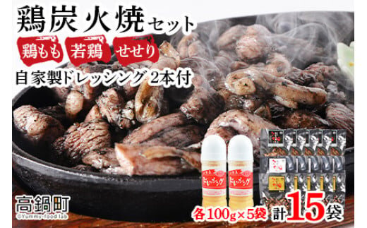 【事業者応援!】 <こだわり鶏炭焼セット15袋+自家製ドレッシング220g×2本>2026年1月末迄に順次出荷