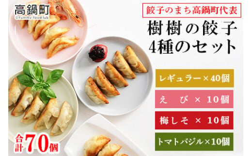 <樹樹の餃子4種のセット計70個>翌月末迄に順次出荷