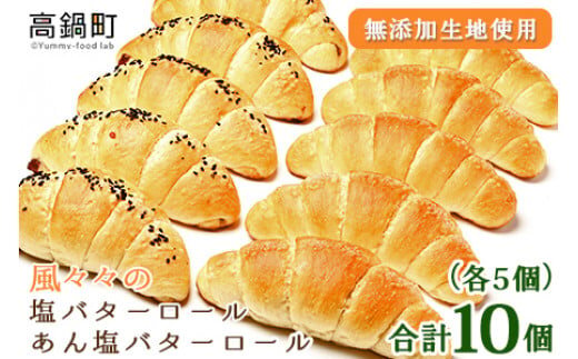 <塩バターロール・あん塩バターロール 各5個 合計10個>翌月末迄に順次出荷