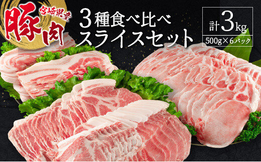 宮崎県産豚 3種 食べ比べ スライスセット(500g×6パック)計3kg 国産 肉 豚肉 ご飯 おかず しゃぶしゃぶ【C369-2510-90】