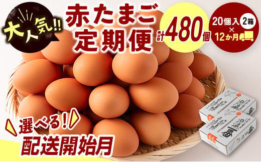 <配送開始月が選べる!!>児湯養鶏自慢の卵 ネッカリッチ赤たまご「児湯一番」 計480個 (20個入×2箱)×12か月定期便 ※2025年11月配送開始【E19-2511】
