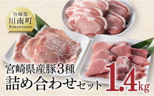 宮崎県産 豚3種詰め合わせ セット 1.4kg【ミヤチク 九州産 豚 肉 豚肉 ロース ヒレ フィレ ヘレ しゃぶしゃぶ カツ用 おうちごはん おうち時間 送料無料】