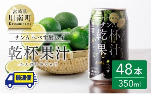 【地域限定】 へべす酎ハイ 「乾杯果汁」 缶 (350ml×48本)【酒 柑橘系 お酒 チューハイ リキュール アルコール 度数5%】