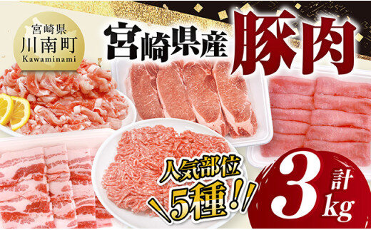 宮崎県産豚肉5種 3kg 【 豚肉 ぶた肉 肉 ロース バラ 切り落とし ミンチ 焼肉用 豚肉セット 】