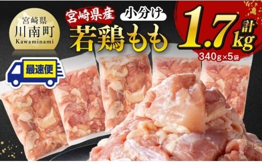 ※最速便※【小分け】宮崎県産若鶏 もも切身 計1.7kg(340g×5)【 宮崎県産 真空パック 国産 九州産 鶏肉 若鶏 肉 とり もも モモ肉 宮崎県 川南町 送料無料 】