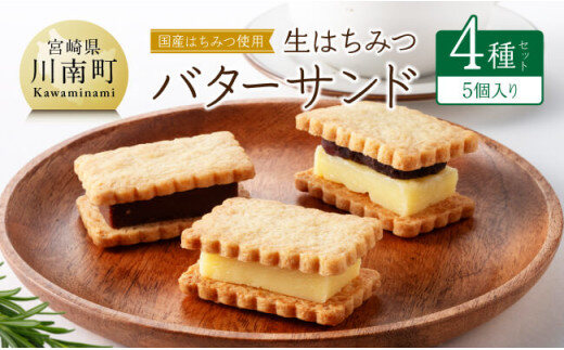 国産はちみつ使用!生はちみつバターサンド4種セット(5個入り) 【 国産 蜂蜜 ハチミツ お菓子 スイーツ デザート 】