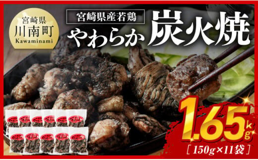 ※令和7年10月発送※ 宮崎県産若鳥 やわらか炭火焼 計1.65kg(150g×11袋) 【 鶏 肉 鶏肉 国産 とり 九州産 鳥 宮崎県産 小分け 炭火焼き 】