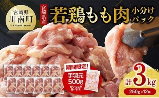 【令和7年10月発送】【小分け】宮崎県産若鶏 もも肉計3kg(250g×12袋)&手羽元500g 【 鶏 肉 鶏肉 国産 モモ 手羽元 九州産 鳥 小分け 使いやすい 便利 】