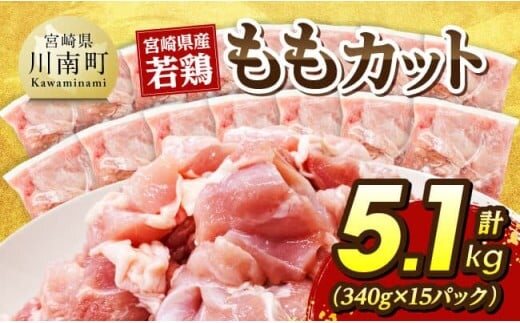 宮崎県産若鶏 ももカット5.1kg(340g×15) 【 宮崎県産 真空パック 国産 九州産 鶏肉 若鶏 肉 とり もも モモ肉 宮崎県 川南町 送料無料 】