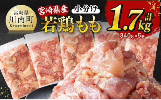 ※令和8年2月発送※【小分け】宮崎県産若鶏 もも切身 計1.7kg(340g×5)【 宮崎県産 真空パック 国産 九州産 鶏肉 若鶏 肉 とり もも モモ肉 宮崎県 川南町 送料無料 】